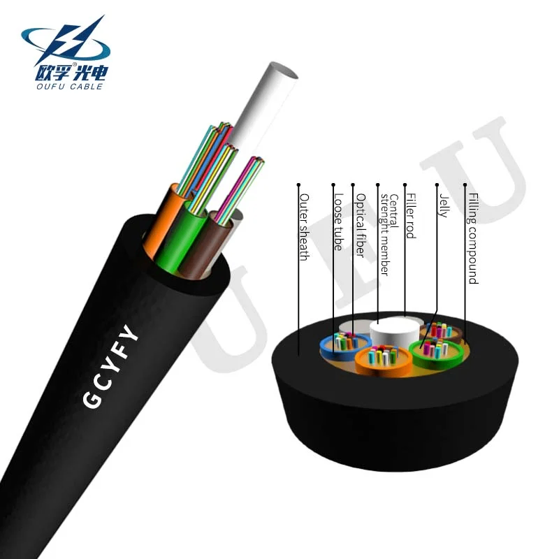GCYFY has a relatively simple structure. It uses FRP as the central reinforcement material and has a high modulus. The outer casing of the PBT material is smaller. The SZ stranding method is used to twist the casing or fill strip around the FRP into the cable core, and then wrap it with a sheath.