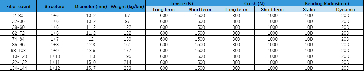 Loose tube stranding, Non-metal strength member, Flooding jelly compound, Steel-polyethylene adhesive sheath